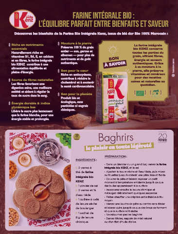 Découvrez les bienfaits de la Farine Bio Intégrale Kenz, issue de blé dur Bio 100% Marocain :