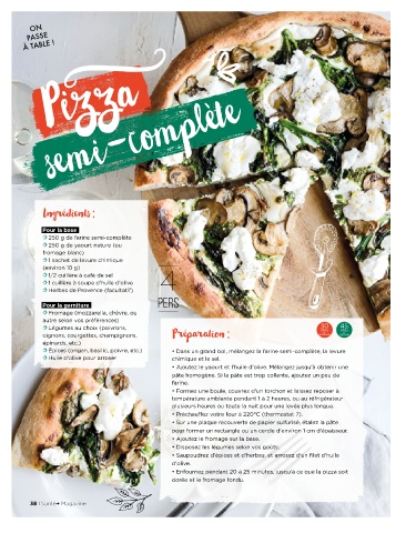 Épices (origan, basilic, poivre, etc.) • Dans un grand bol, mélangez la farine semi-complète, la levure