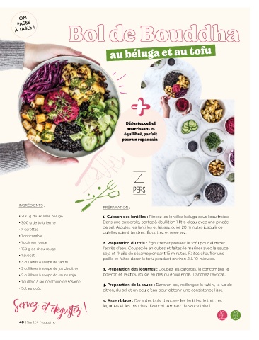 5. Assemblage : Dans des bols, disposez les lentilles, le tofu, les