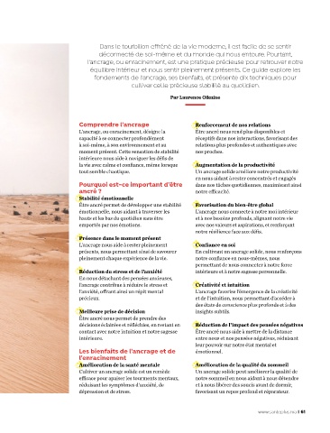 fondements de l'ancrage, ses bienfaits, et présente dix techniques pour