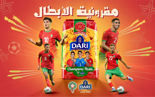 Leader national du couscous et des pâtes alimentaires, DARI rend hommage à la passion du football et aux Lions de l’Atlas à travers une édition collector exclusive baptisée “Champions Pasta”. Habillée aux couleurs du Maroc, cette édition spéciale porte haut les symboles de la fierté nationale, de l’esprit d’équipe et de l’excellence.